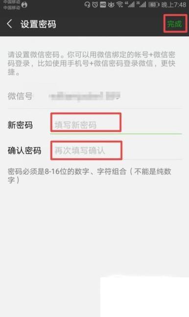 04弹出的界面,我们输入新密码,然后再次输入密码,之后我们点击完成就可以了。