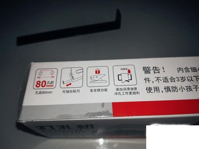 03然后将需要打卡的物品放入,我用的这个打孔机的孔距为80毫米,不能放入过厚的物品。
