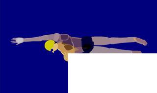 02蝶泳蝶泳双手划水两手距离接近最近时,手臂划水的方向再一次改变,转为向外、向上和向后划水,直至出水。划水出水后,手臂在肩的带动下经空中向前移臂,准备入水、移臂一般以低、平、放松的姿势从两侧前移。蝶泳的身体姿势掌握比较难,同时鞭状打水也不易掌握。
