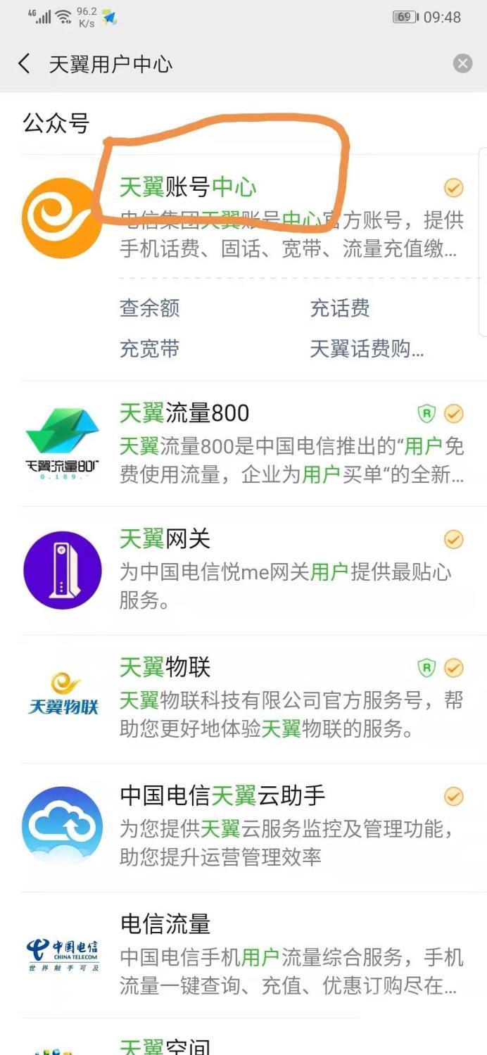 操作方法01首先我们打开微信,点击右上角”+“号,点击添加公众号,然后在搜索框搜索“天翼用户中心”公众号。