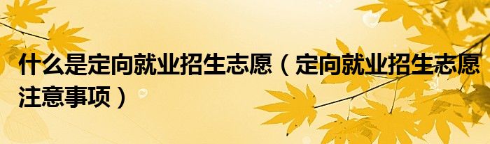 大家好,小高来为大家解答以上问题。什么是定向就业招生志愿,定向就业招生志愿注意事项很多人还不知道,现在让我们一起来看看吧!