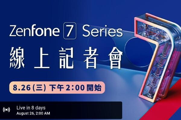 华硕正式确认其最新旗舰产品Zenfone 7系列的发布。发布活动将于8月26日通过YouTube虚拟新闻发布会进行。