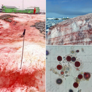 几周前,位于南极洲的乌克兰Vernadsky研究基地的科学家醒来,发现他们通常是原始的白色周围充满了令人震惊的血红色。