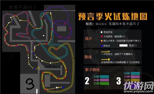 最好和小伙伴或者路人结伴而行,如果有人火灭了,就原地等他一会,然后继续前行。这个试炼就是在考验你和朋友的默契程度,每一个火堆就是一个刷新点,火灭了就被传送至上一个刷新点处,传送门相当于一段路的终点,一共要走三个传送门。