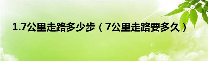 大家好,小堂为大家解答以上问题。1.7公里走路多少步,7公里走路要多久目前这个还是有很多人还不知道,现在让我们一起来看看吧!