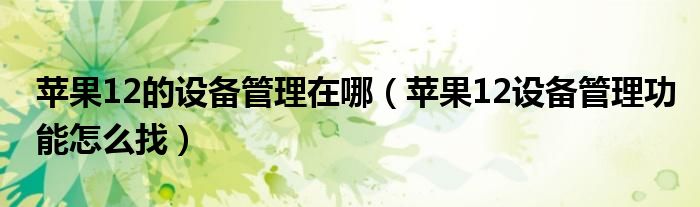 摘要大家好,小玩来为大家解答以上问题。苹果12的设备管理在哪,苹果12设备管理功能怎么找目前这个还是有很多人还不知道,现在让我们一起来看看