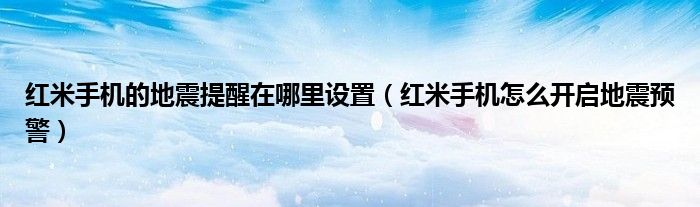 摘要大家好,小玩来为大家解答以上问题。红米手机的地震提醒在哪里设置,红米手机怎么开启地震预警目前这个还是有很多人还不知道,现在让我们一