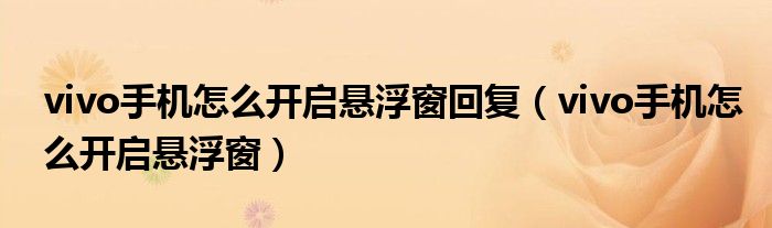 摘要大家好,小玩来为大家解答以上问题。vivo手机怎么开启悬浮窗回复,vivo手机怎么开启悬浮窗目前这个还是有很多人还不知道,现在让我们一起来