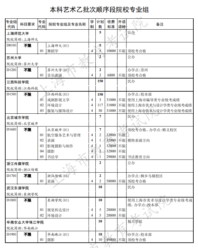2021年上海市一般 高校招生本科艺术类乙批次的顺序段招生专业及计划(含缺额计划)已经发布了,下面是小编整理的相关信息,赶快来看吧!