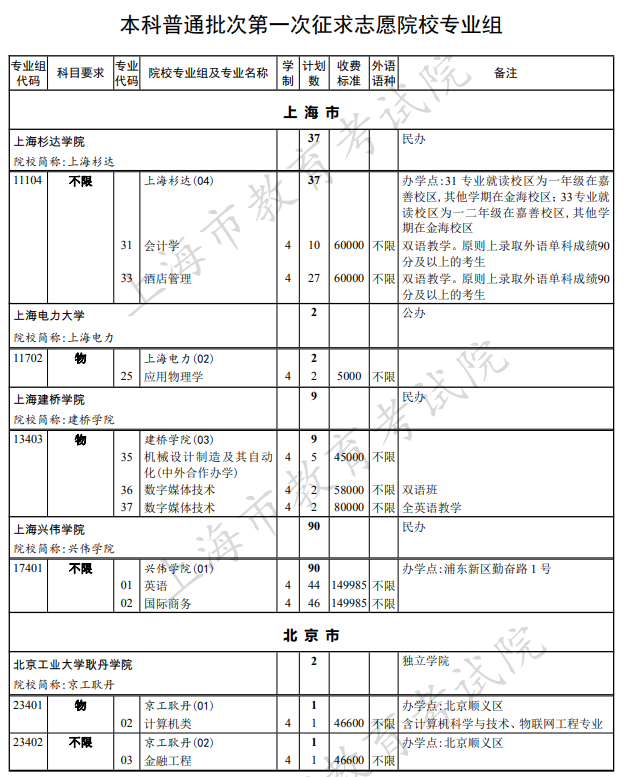 2021年上海市本科一般 批次尚有缺额,将进行第一次征求志愿,下面是各院校专业组的招生计划汇总,一起来看!