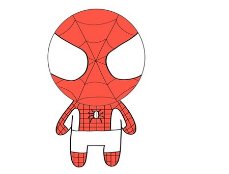 然后画出蜘蛛侠的身体轮廓,因为我们画的是Q版的蜘蛛侠,所以只需要保持蜘蛛侠身体的宽度和他的头部一致就可以了,这样更符合Q版人物大脑袋小身体的设定。