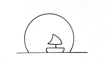 先画一条水平线,在上面画一条船。