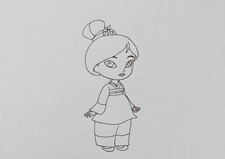 最后,木兰的衣服被涂成蓝色和红色,鞋子被涂成黑色,这样木兰的简笔画就完成了。
