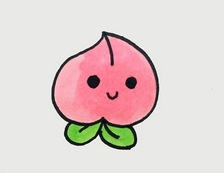 最后把桃子涂成粉色,注意大部分部位的颜色,叶子涂成绿色,这样就完成了一个简单的桃子简笔画。