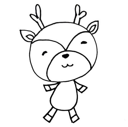 最后,给鹿的头、鹿角、蹄子和脸涂上颜色,就会画出一只可爱的鹿。
