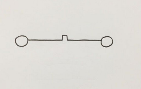 先画出机身上方的小凸起,然后向左右两边延伸画出机翼上方的直线轮廓,再画出末端的圆形部分。