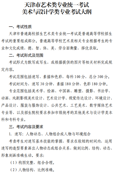 天津市艺术类专业统一考试美术与设计学类专业考试大纲已经发布,小编整理了相关内容,下面是详细信息,来看一下吧!