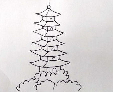 最后画出塔下的树木,这样就可以画出西湖雷峰塔的简单简笔画。
