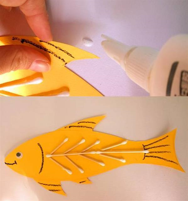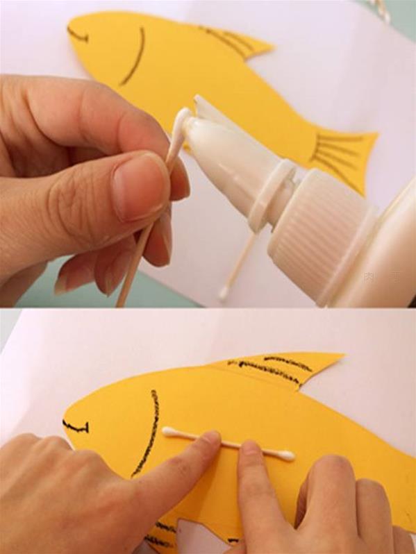 第三步:把棉签变成小鱼的骨头。