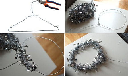 材料:铁丝、钳子、白纱、剪刀、针线、装饰亮条。