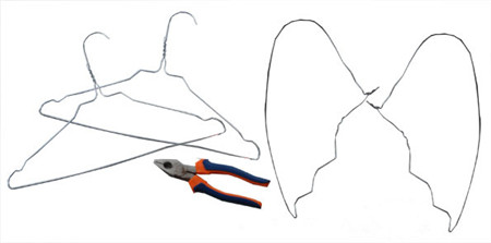 第一步:用钳子把铁丝或铁丝衣架拧成翅膀的形状,如图。