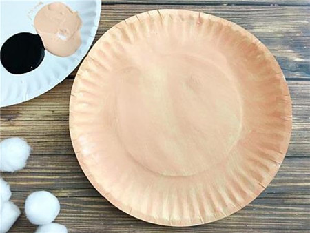 第一步:将整个蛋糕盘涂上肉色颜料,放在一边晾干。