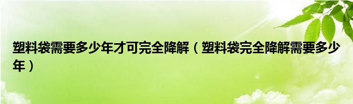 大家好,小养来为大家解答以上塑料袋需要多少年才可完全降解,塑料袋完全降解需要多少年的问题,小养也是到网上收集了一些与塑料袋需要多少年才可完全降解,塑料袋完全降解需要多少年相关的信息,那么下面分享给大家一起了解下吧。