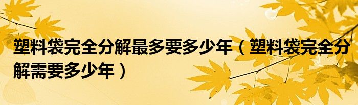 大家好,小养来为大家解答以上塑料袋完全分解最多要多少年,塑料袋完全分解需要多少年的问题,小养也是到网上收集了一些与塑料袋完全分解最多要多少年,塑料袋完全分解需要多少年相关的信息,那么下面分享给大家一起了解下吧。