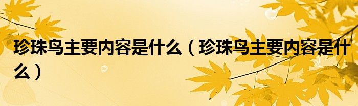 大家好,小初来为大家解答以上珍珠鸟主要内容是什么的问题,小初也是到网上收集了一些相关的信息,那么下面分享给大家一起了解下吧。