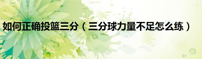大家好,小养来为大家解答以上如何正确投篮三分,三分球力量不足怎么练的问题,小养也是到网上收集了一些与如何正确投篮三分,三分球力量不足怎么练相关的信息,那么下面分享给大家一起了解下吧。