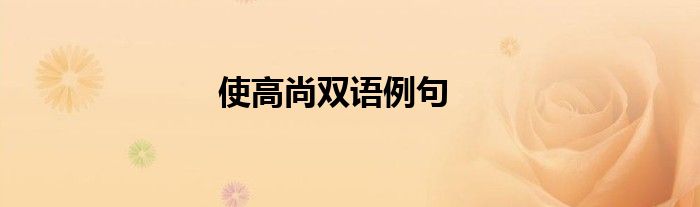 大家好,我是教育新闻网的编辑小语,小语到网上收集了一些与使高尚双语例句相关的信息,那么下面分享给大家一起了解下吧。