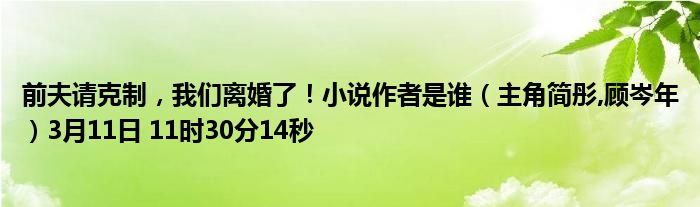 你们好,今天木子分享前夫请克制,我们离婚了!小说作者是谁,跟随我一起瞧瞧吧!