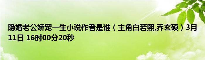 你们好,今天木子分享隐婚老公娇宠一生小说作者是谁,跟随我一起瞧瞧吧!