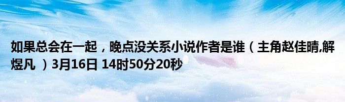 你们好,今天木子分享如果总会在一起,晚点没关系小说作者是谁,跟随我一起瞧瞧吧!