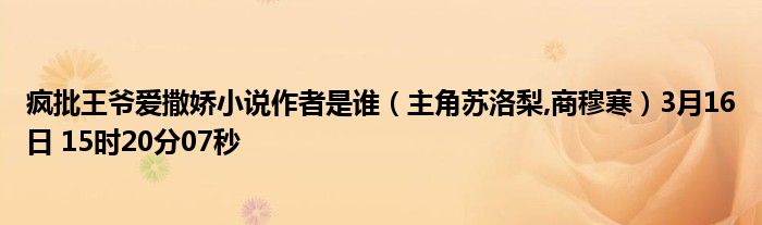 你们好,今天木子分享疯批王爷爱撒娇小说作者是谁,跟随我一起瞧瞧吧!