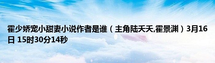 你们好,今天木子分享霍少娇宠小甜妻小说作者是谁,跟随我一起瞧瞧吧!