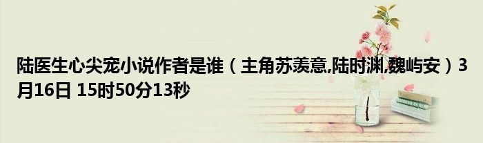 你们好,今天木子分享陆医生心尖宠小说作者是谁,跟随我一起瞧瞧吧!