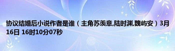 你们好,今天木子分享协议结婚后小说作者是谁,跟随我一起瞧瞧吧!