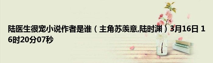 你们好,今天木子分享陆医生很宠小说作者是谁,跟随我一起瞧瞧吧!