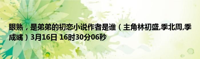 你们好,今天木子分享眼熟,是弟弟的初恋小说作者是谁,跟随我一起瞧瞧吧!