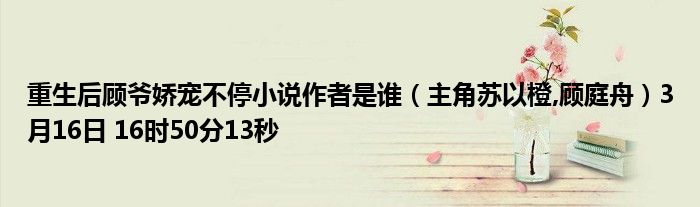 你们好,今天木子分享重生后顾爷娇宠不停小说作者是谁,跟随我一起瞧瞧吧!
