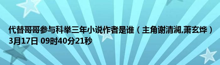 你们好,今天木子分享代替哥哥参与科举三年小说作者是谁,跟随我一起瞧瞧吧!