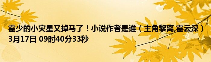 你们好,今天木子分享霍少的小灾星又掉马了!小说作者是谁,跟随我一起瞧瞧吧!