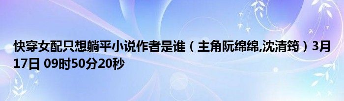 你们好,今天木子分享快穿女配只想躺平小说作者是谁,跟随我一起瞧瞧吧!