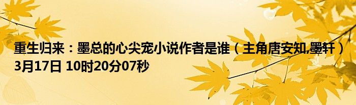 你们好,今天木子分享重生归来:墨总的心尖宠小说作者是谁,跟随我一起瞧瞧吧!