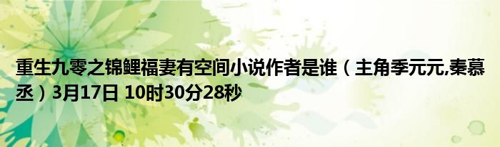 4、读书简介:以季元元、秦慕丞为主角的,小说名字是《重生九零之锦鲤福妻有空间》,该书作者是“浅元”大大,书中故事简述是:上一世的季元元拿着一手好牌,结果却打成了烂牌,原本可以过养尊处优的幸福生活,偏偏听信了渣男的鬼话,为了赵天华这个渣男做了很多的错事,害得母亲死不瞑目,大哥客死异乡,二哥被车撞身首异处,就连她自己也没能善终!承蒙上天眷顾,带着记忆重生回到最初,这次季元元不仅双商在线,还获得了锦鲤体质以及神秘空间,强势的整治了渣男,转身抱上了大佬前夫的金大腿,她决定这一世再也不要跟他分开!