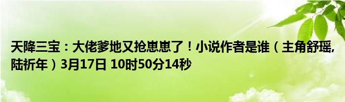 你们好,今天木子分享天降三宝:大佬爹地又抢崽崽了!小说作者是谁,跟随我一起瞧瞧吧!