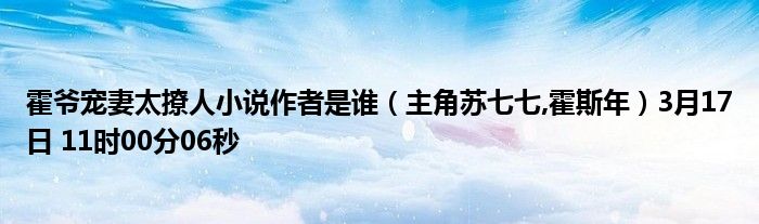 你们好,今天木子分享霍爷宠妻太撩人小说作者是谁,跟随我一起瞧瞧吧!