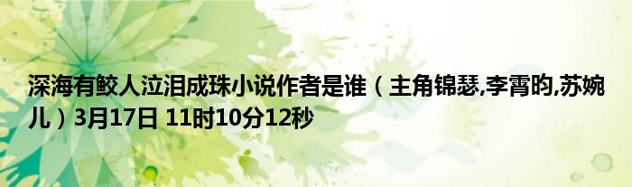 你们好,今天木子分享深海有鲛人泣泪成珠小说作者是谁,跟随我一起瞧瞧吧!