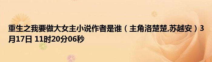 你们好,今天木子分享重生之我要做大女主小说作者是谁,跟随我一起瞧瞧吧!